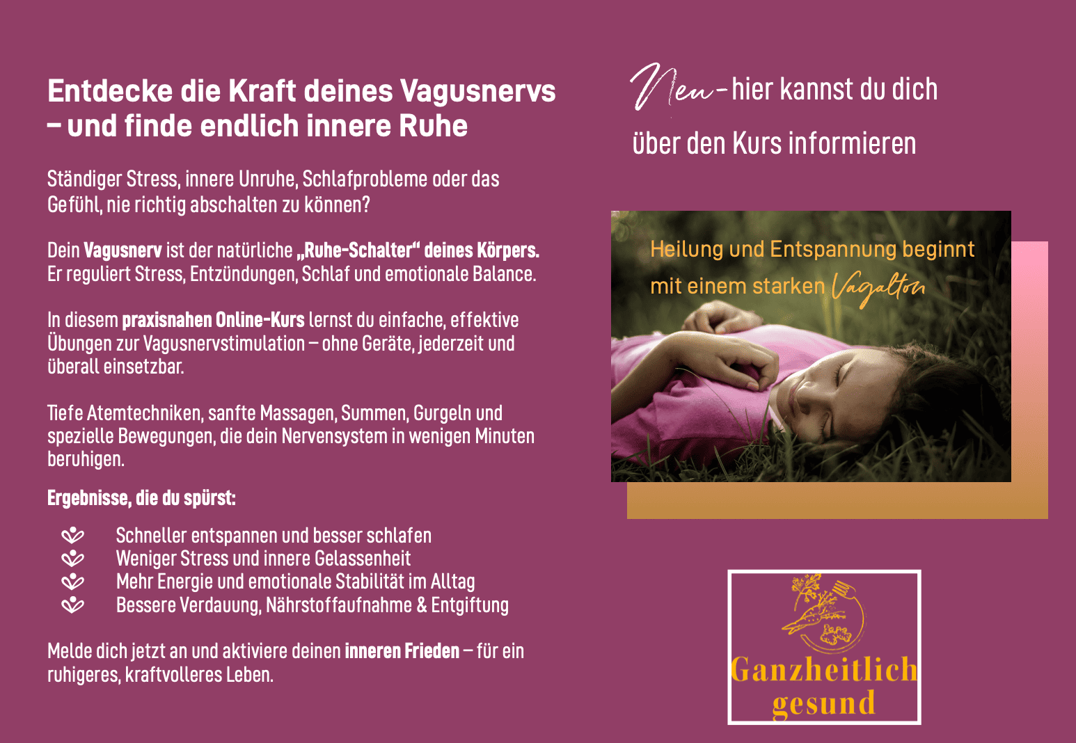 Endlich wieder inneren Frieden finden durch Vagusnerv Stimulation und Faszientraining-zur Einführung nur 89 €
